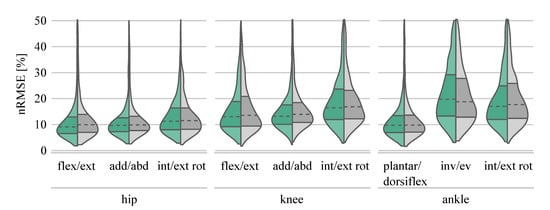 Distribution of the nRMSE values for the joint angle prediction.