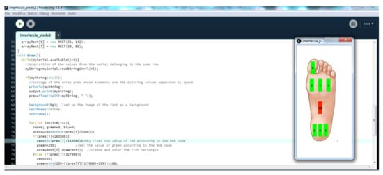 The article is arranged as follows: in the following section, an overview of smart insoles based on FSRs and inertial sensors is presented; in Section 3, the setup employed to characterize Velostat-based piezoresistive sensors is described. Then, the characterization of realized Velostat-based sensors is reported as a function of size, support material, fixing method, and pressure trend (Section 4). Moreover, the design of the sensing matrix based on a sandwich structure is introduced, integrated with a low power acquisition and processing section. Subsequently, the Processing® application to post-process and display the data received by the smart insole is presented. Finally, in Section 5, the obtained results are discussed.