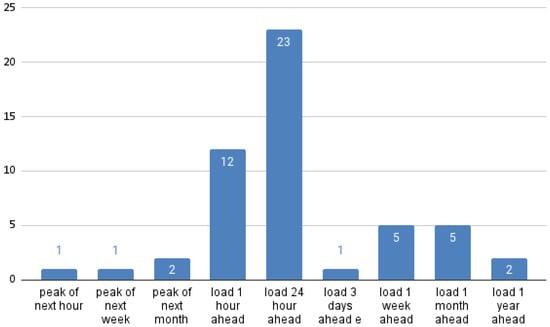 Figure 2 also shows that the number of papers that look at peak values only ([,,]) is very low compared to those that predict the load time series, and none of those was published after 2011. Narrowing to peak values was apparently done to simplify the problem, but currently predicting a complete time series is more useful for operative purposes (and, of course, peak values can be drawn from the predicted time series).