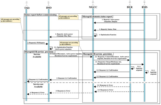 Sequence diagram of FR support from MG. The message format for interaction inside microgrid, which is LAN, is according to the IEC 61850–8–1 and IEC 61850–8–2 is used for communication in WAN, between the MGCC and the utility grid supervisory unit i.e., DSO/TSO.