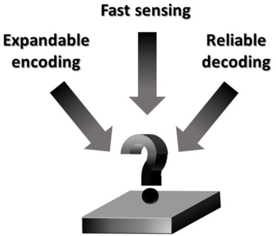As discussed in the previous section, there is a trade-off between fast sensing and reliable sensing. A solution for avoiding this trade-off is to reliably sense multiple magnetic nanobarcodes, to speed up the decoding by reducing the number of required readouts/measurements. In contrast to the huge progress in the encoding and sensing of magnetic nanobarcodes, the reliable decoding of them has not received much attention, even though it is crucial for the commercial transition [5,6]. Furthermore, establishing a roadmap for the reliable decoding of multiple nanobarcodes is not only beneficial for the magnetic nanobarcodes, but other nanobarcodes can also take benefits from this, to ramp up the authentication speed. Here, we again discuss the recent works to focus on the MNW-based nanobarcodes.