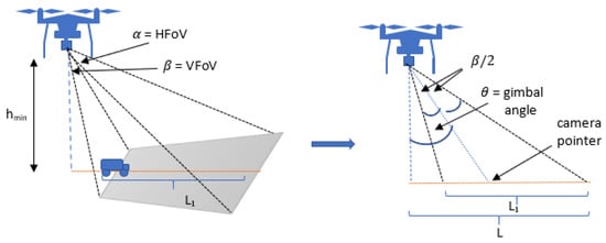 As shown in Figure 1, L represents the wavelength, and is the look-ahead distance of the UAV at its minimum altitude and is calculated by substituting the VFoV, gimbal angle, and in .