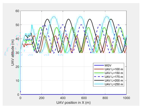 The UAV’s altitude when following the MGV for different L values.