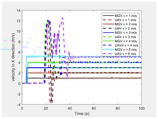 The UAV’s horizontal velocity for different constant velocities of the MGV.