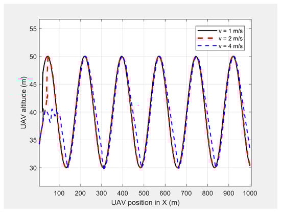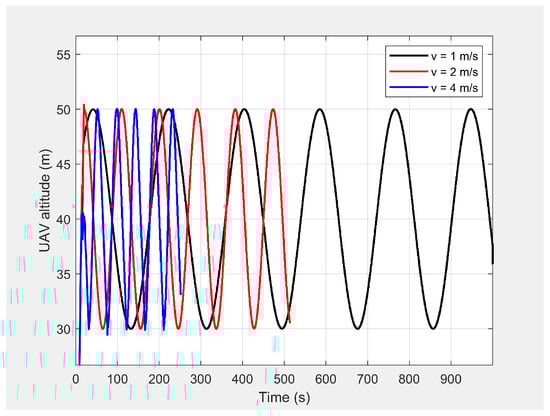 Altitude of the UAV’s planned path when following the MGV while moving at different constant velocities.