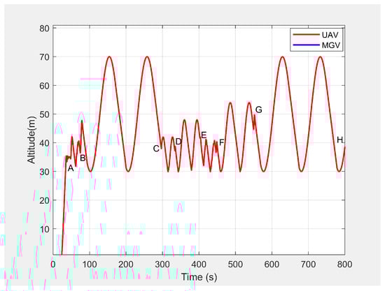Altitude of the UAV’s planned path when following the MGV while moving at a varying velocity.