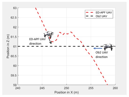 The UAV’s planned path for dynamic obstacle avoidance when encountering another UAV (Ob2).