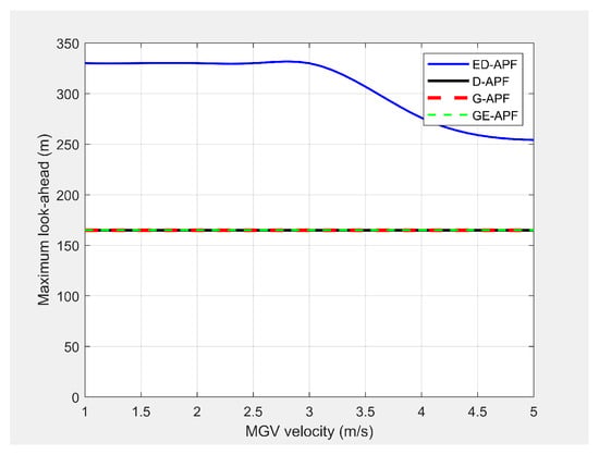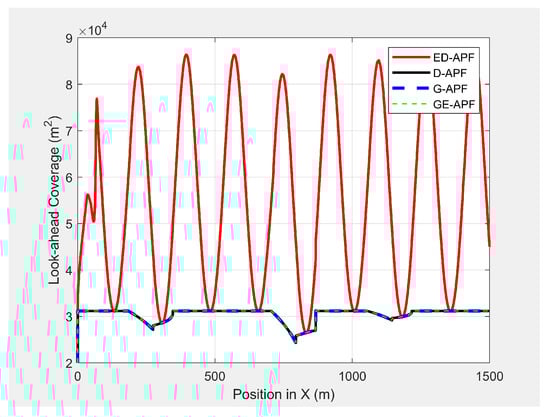 The ED-APF’s look-ahead distance and coverage for different values at the MGV’s velocity of 4 m/s.