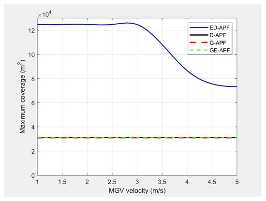 Comparison of the maximum coverage for different velocities of the MGV.