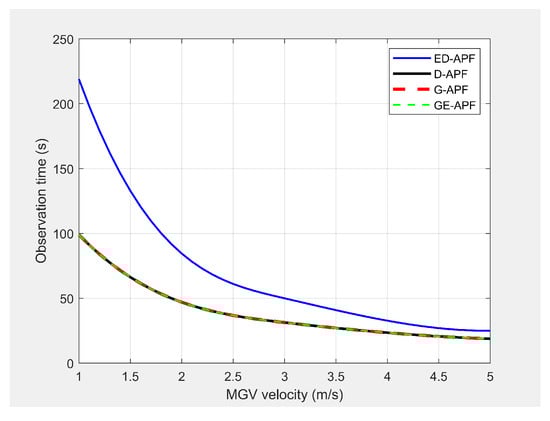 Comparison of the observation time for different velocities of the MGV.