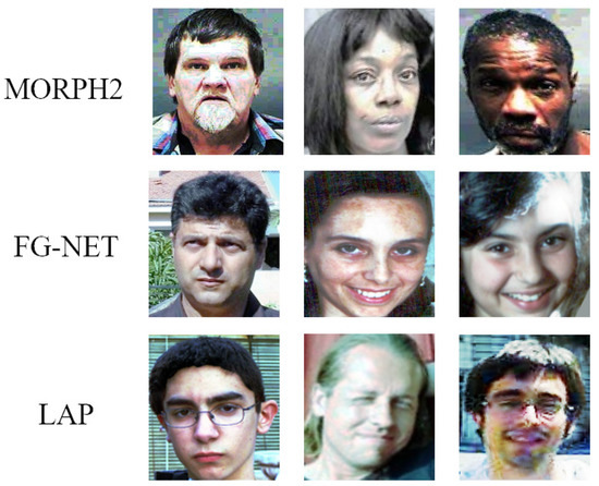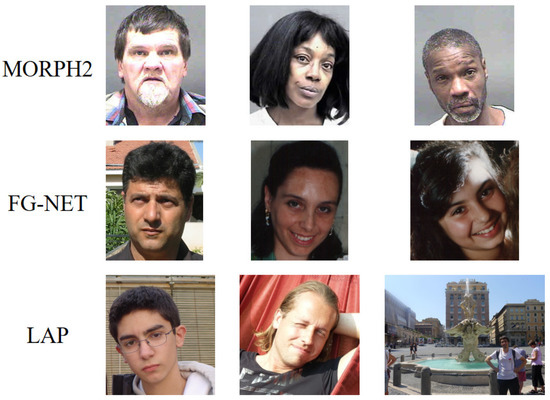 Some of the processed images from the MORPH2, FG-NET, and LAP databases.