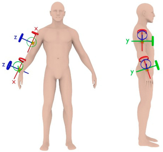 The IMUs location in the dominant hand and relevant coordinate systems in upright standing (Z-axis, anteroposterior; Y-axis, mediolateral; X-axis, vertically aligned with the direction of the gravitational field vector) is shown in Figure 1.