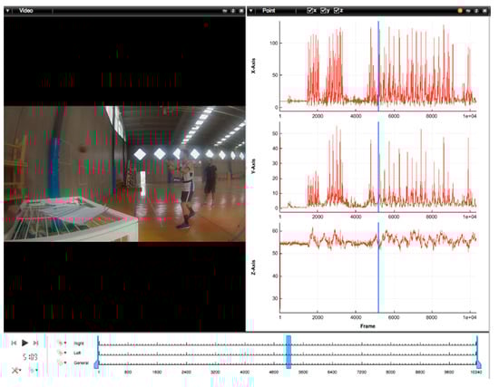 Videos were analysed with Kinovea video-analysis software (v.0.8.15) and Mokka Motion kinetic and kinematic analyser (v0.6.2) (Figure 3) toolkits to collected data from the success rates in hitting the targets (accuracy) and passing execution time. Pass execution started when the participant just received the ball in his hand to initiate the sequence of movements specific to each pass type, and finished when the player releases the ball towards its target destination. Initial and final time stamps were precisely determined based on static images selected out of the recorded videos. Angular velocities were exported and processed using a custom-built Excel spreadsheet (Supplementary Materials).