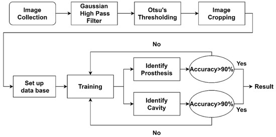 The purpose of this study was to develop a CNN model for transfer learning to identify and classify restoration and caries findings given a bitewing image. The proposed method is divided into four steps: (1) image preprocessing, (2) image cropping, (3) setting up the database, and (4) CNN image identification. Detailed research steps, as shown in Figure 1.
