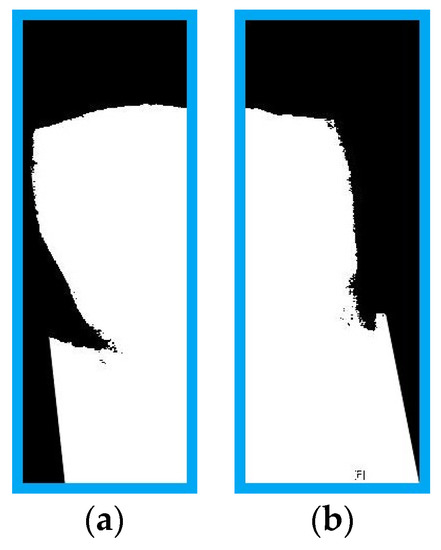 In this study, Otsu’s algorithm was adopted to select the threshold value. Its principle is to automatically find the threshold value for cluster-based images. The algorithm assumes that the image has a two-mode histogram (a histogram distinguished by foreground and background pixels). The optimal threshold that can separate the foreground and background pixels can be calculated by using the exhaust method in order to obtain the minimum number of variations in individual classes and the maximum number of between-class variations. According to the histogram obtained from different thresholds, the corresponding number of individual class and between-class variations is obtained, and the differences are compared [25,26]. The implementations are shown in Figure 2.