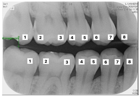 - Lin, N.H.; Lin, T.L.; Wang, X.; Kao, W.T.; Tseng, H.W.; Chen, S.L.; Kuo, Y.F. Teeth Detection Algorithm and Teeth Condition Classification Based on Convolutional Neural Networks for Dental Panoramic Radiographs. J. Med. Imaging Health Inform. 2018, 8, 507–515. [Google Scholar] [CrossRef]