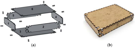 The object that is used for assembly process [64]. On the right (a) the box parts and on the left (b) fully assembled box.