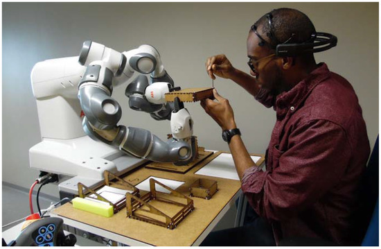 - Garcia, A.P.; Schjolberg, I.; Gale, S. EEG Control of an Industrial Robot Manipulator. In Proceedings of the IEEE 4th International Conference on Cognitive Infocommunications (CogInfoCom), Budapest, Hungary, 2–5 December 2013; pp. 39–44. [Google Scholar]