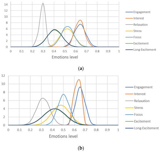 Several emotion-recognition methodologies, techniques and technologies are developed and used for understanding the human emotions. An example of technology that is becoming more relevant in this field is electroencephalography (EEG) [21]. EEG is a non-invasive method that allows for detecting the brain activity of a person. One of the reasons why EEG is being used to interpret emotional patterns is that brain activity is an internal signal, meaning that is harder to influence voluntarily, giving a more realistic result of the emotion interpretation [22]. With the goal of applying EEG technology outside the medical domain, there are some companies that are producing EEG headsets that can be used for industrial applications as robot manipulation [23], vehicle (drone) control [24], or even video games [25,26].