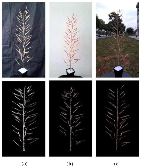 - Wei, F.; Hui, F.; Yang, W.; Duan, L.; Chen, G.; Xiong, L.; Liu, Q. High-throughput volumetric reconstruction for 3D wheat plant architecture studies. J. Innov. Opt. Health Sci. 2016, 9, 1650037. [Google Scholar]