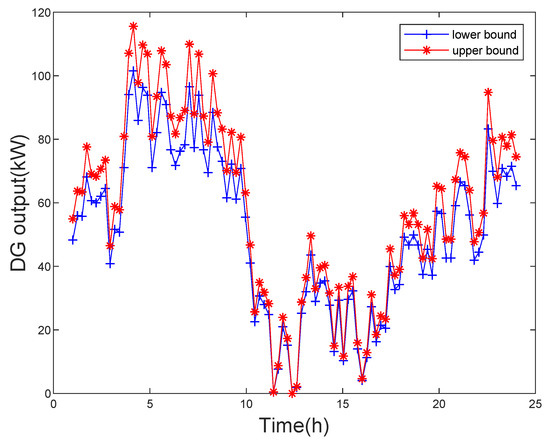 Considering the randomness of DG outputs and EV charging load demand, the measurement formulas of DG outputs and EV charging load demand can be extended as follows. The upper and lower bounds of DG outputs and EV charging load demand are set out, respectively.