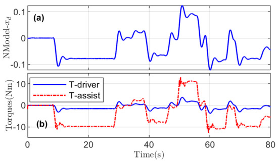 However, when the objective of both driving agents are different, the torques generated by the human driver and the automation are in an opposite direction. These cases generally arise when a sudden maneuver is executed, for instance obstacle avoidance [24], navigating a sharp curve [25], or highway lane change [26]. In these scenarios, the value of decreases, i.e., a non-cooperative status. These driving scenarios should be avoided or reduced to improve the haptic shared driving control performance.