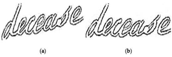 - Dong, J.; Dominique, P.; Krzyyzak, A.; Suen, C.Y. Cursive Word Skew/Slant Corrections Based on Radon Transform. In Proceedings of the Eighth International Conference on Document Analysis and Recognition, Seoul, Korea, 31 August–1 September 2005; pp. 478–483. [Google Scholar]
