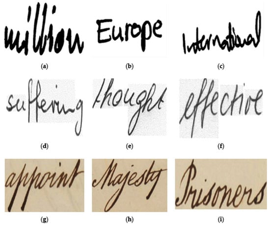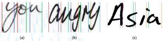 - Zimmermann, M.; Bunke, H. Automatic Segmentation of the IAM Off-Line Database for Handwritten English Text. In Proceedings of the Object Recognition Supported by User Interaction for Service Robots, Quebec City, QC, Canada, 11–15 August 2002; Volume 4, pp. 35–39. [Google Scholar]