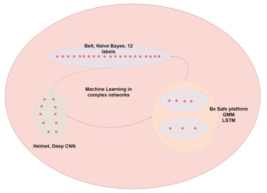 - Finally, an ML model is applied to the generated data where what we are doing is weighting the response of the different artificial intelligence models represented as a complex network to reduce the classification noise in industrial and work environments. The entire process is summarised in Figure 12.