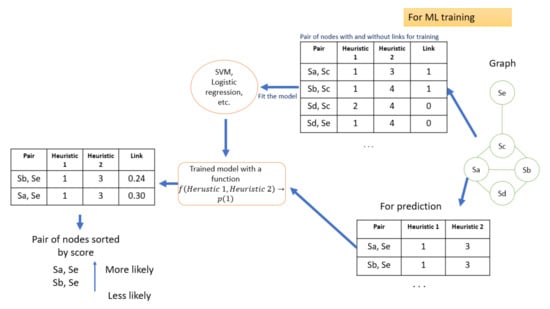 Likewise, in different works focused on complex networks [,], it has been demonstrated that the analysis of information in the form of graphs allows a more complete structuring since non-linear information can be treated intuitively, which is why it has been proposed to transfer various machine learning techniques to complex networks, where links between pairs of nodes or relationships can be predicted based on previous information. For this purpose, heuristics well known in fields such as biology or computer science have been used.