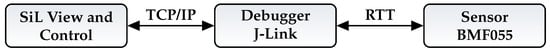 The communication between the firmware and the host is realized using the Segger Real-Time Transfer (RTT) interface. This interface offers the ability for real-time communication and contains other features that are useful for running the prototypical implementation. The hardware used is the Segger J-Link Base hardware debugger [26] which integrates the transfer protocol and allows a developer to debug the sensor firmware. This lite version has a limited transfer speed but is sufficient to inject the sensor data back into the sensor. If higher data rates than the ones used in the experiments in Section 5 are required, it is possible to use the Segger J-Link Pro, PLUS or ULTRA+ versions. Using the J-Link hardware debugger has the benefit that no additional hardware is needed for the implementation of the SiL features. More information about the used RTT interface can be found on the Segger website [27].