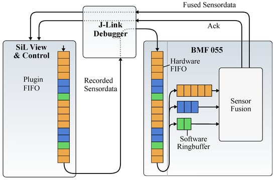 We identified the criteria that must be met to implement such a SiL architecture, so that it will work in real time. Following these criteria, we designed an example implementation of our approach using the BMF055, a state-of-the-art smart inertial sensor by Bosch Sensortec. The evaluation of this implementation was done using different sensor configurations. These configurations used one or multiple hardware sensors at a time. Even configurations with multiple sensors and different sampling rates were tested.