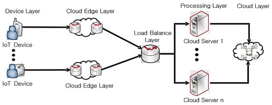 The processing layer further enforces the load balance of IoT data after detailed classification of IoT data classified as pre-processed n-bit blocks in the load balance layer by different types of information. This process can maintain the integrity and accuracy of large amounts of IoT data because it can directly access IoT data. Also, this process requires more computational power than the load balance layer but has the advantage of saving bandwidth and maintaining the recognition results of large amounts of IoT data.