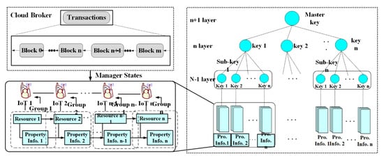 Figure 4, the proposed technique allows IoT data blocks contained in lower groups to be organized into hierarchical multi-step groups to be periodically reconstructed according to the nature of IoT block data to tie IoT block information hierarchically by replication.