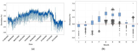 Figure 7a). Thus, the deviations calculated did not exceed the level of −3% as shown in the bottom graph (