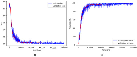 Experiments were conducted on a PC with Intel (R) Core (TM) i5-8500 CPU @ 3.00 GHz, equipped with a NVIDIA GTX 1080Ti GPU on Ubuntu 16.04 operating system under the Caffe framework. The learning rate was initialized to and the maximum number of iterations was . We set the weight decay to and the momentum to . The stochastic gradient descent (SGD) optimization algorithm was utilized, and the batch size was 64.