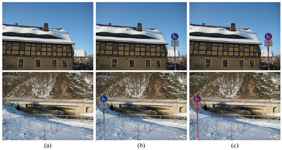 An illustrative example is presented in Figure 10, where image parts of traffic signs from Kodak_M1063 are carefully spliced into two Canon_Ixus70 images. All nonoverlapping patches in the tampered images (Figure 10b) are identified according to the trained model-level network with the proposed method. Taking the majority voting results of all patches as the model ID of the whole image, misclassified patches are marked with red squares, considered as the tamper detection results shown in Figure 10c.