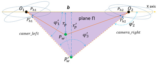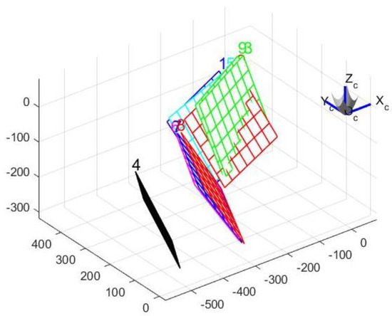 The standard camera, as an image sensor, is an important part of vision measurement, and can perform the mapping of two- and three-dimensional environmental points. The imaging model of ordinary cameras is often nonlinear, but because the field of view angle of ordinary cameras is very small, it can be simplified as an ideal model (linear model) for pinhole imaging, which is equivalent to the object being shot onto the CCD or CMOS sensor through the pinhole. The pinhole imaging model is a kind of mapping that projects all the environmental points onto the image plane through the center point of the camera’s optical axis, which can be described as a set of virtual sensor elements [13]. Each virtual sensor element contains its inherent optical and geometric properties, so a certain mapping relationship is established between environmental points and image pixels.