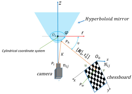 The standard vision systems are described by the pinhole imaging model [12], and modeled by perspective projection. However, there are some image systems that suffer from high-distortion artifacts, such as panoramic vision systems, which cannot be described by the pinhole imaging model. Due to the fact that the panoramic vision systems need to consider the reflection of the fisheye camera lens, when modeled, these systems cannot be described by the traditional pinhole camera model. For the calibration of the panoramic vision systems, many different imaging models have emerged, such as: pinhole imaging model, central refraction spherical unified model, pixel ray model, radial distortion model, fisheye camera model, Taylor series model, and MEI camera model, and there are many different calibration methods for the same imaging model.