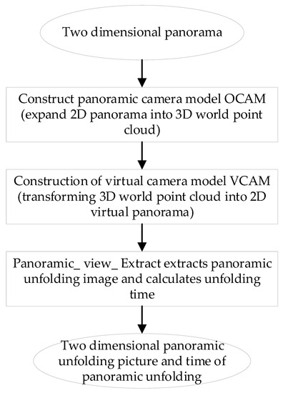 In 2002, Koyasan et al. [131] used the optical path tracking expansion method to expand the panoramic image in real-time embedded systems, which can robustly track multiple moving obstacles in complex environments. In 2007, Wei Xu et al. [132] deduced the optical path tracking expansion algorithm that expands the circular panoramic image taken by the imaging device into a cylindrical panoramic image. Aiming at the large amount of calculation and poor real-time performance in the optical path tracking expansion algorithm, he proposed that concentric circle approximate fast expansion and eight-term symmetry reuse fast expansion are two fast expansion algorithms. In 2013, Xiaoxi Zhang et al. [133] adopted the symmetric multiplexing panoramic image expansion method of optical path tracking, which solved the shortcomings of the traditional panoramic image expansion method that equality and real-time performance of the expanded image cannot be achieved, and met the real-time requirements.