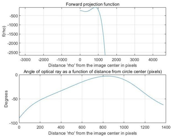 Two-dimensional based calibration relies on control points within an indicator pattern. These control points can be corner points (or any other specific points), or any characteristic features that can be extracted and quantified from the image. By using an iterative method, the internal and external parameters can be inferred. Because 2D images can easily cover the whole refraction image, their methods can be calibrated accurately and their algorithms are also complex. The most representative one is Tsai’s two-step [14] and Zhang’s calibration methods using a two-dimensional square calibration board. It consists in collecting pictures of the calibration board in different positions, extract the pixel coordinates of the corner points from the picture, calculate the initial value of the camera’s internal and external parameters by using the single matrix, estimate the distortion coefficient by the nonlinear least squares method, and finally optimize the parameters by using the maximum likelihood estimation method. The method is operationally simple and offers good precision in most applications, and has gradually developed into a popular calibration method in computer vision. In 2002 H. Backstein et al. [54] used two-dimensional rectangular checkerboards to calibrate the fisheye camera to achieve seamless image mosaic 360° × 360°. In 2006, Luo C et al. [55] calibrated pal optical systems with 2D checkerboard mark, and the accuracy of calibration results reached the practical application level. In 2006, Kannala J. et al. [26] proposed a 2D calibration method for fisheye camera, which is used for 3D image reconstruction. In 2006, Scaramuzza D [30] and Steffen Urban [35] in 2015 proposed a method of calibrating the panoramic systems of refraction based on 2D markers. They assumed that the projection function of the image can be modeled by a Taylor series expansion, and its coefficient is estimated by solving the two-step least squares linear minimization problem. The latter is the same as the former, except that the cost function of the former is modified to obtain more accurate and stable calibration results. In 2007, Deng Xiao-Ming [56] proposed a simple 2D calibration model for the central refraction panoramic systems calibration, as it is described in the following.