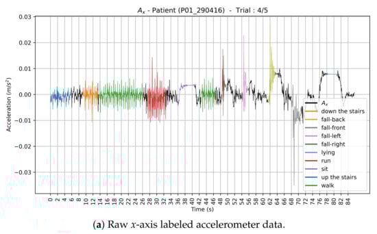 Other studies, like ours, have focused on the use of a single waist-worn accelerometer for the activity recognition. For example, Bidargaddi et al. [] analyzed acceleration signals recorded with a three-axis accelerometer, which is mounted on the waist of patients undergoing cardiac rehabilitation.