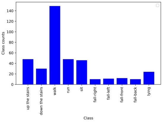 Since this dataset represents activities in real contexts, class imbalances occur. For example, as can be seen in Figure 5, there are more instances of walking than other activities.