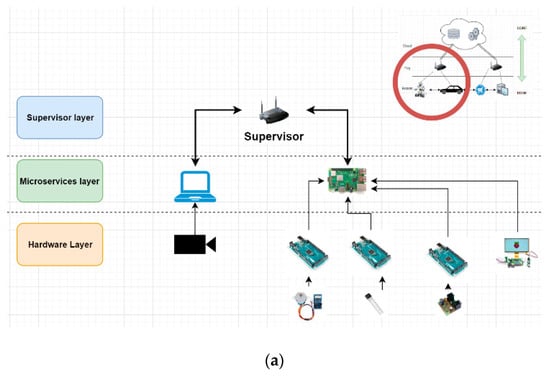 Multilayer FOG architecture: (a) binding the camera remote operated robot structure to the proposed Fog-Edge architecture; (b) Fog-Edge multilayer abstractization.