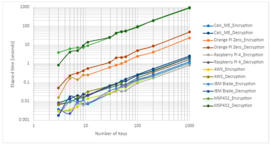 During our experiments, we found that if the prime number is too big its binary representation might be problematic. This can be considered as a disadvantage and can be observed in Table 4 where we present the encryption decryption times elapsed for generating 101 keys with different values of the chosen prime number p. As one can see, when we used big numbers (e.g., p = 1,000,000,007), the computing capability of Orange PI Zero and MSP432 was inadequate. However, in our experiments we considered 101 Supervisors, but in a real-world deployment there are considerably fewer.
