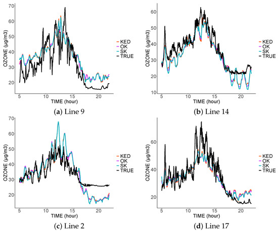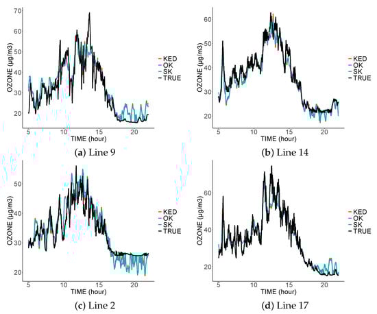 However, several limitations in this study must be detailed: The trams did not go through all types of streets and, therefore, only measured a specific type of urban pollution. Furthermore, the methodology described above was not used to identify the best model to estimate the ozone concentration but rather the concentration measured by sensors similar to those used in this study. In this dataset, we do not have access to the real value of the ozone concentration from reference sensors, and it is, therefore, impossible to carry out a cross validation for this purpose. Moreover, the data from the mobile sensors were considered independent conditionally on the ozone concentration, and this study did not take into account the autocorrelation of data from the same tram.