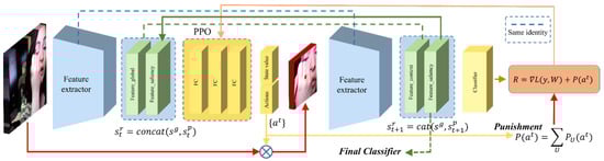 where the probability ratio is , is the network parameter of the SPA model, is the probability distribution of the policy under state and action at step . We optimize the policy with minibatch AdamW. The estimated advantage function according to [66,67,68,69,70] is , where is the discount factor, is the SPA reward at step , is the number of steps of SPA. is the value output with under state . represents the accumulated reward at step .
