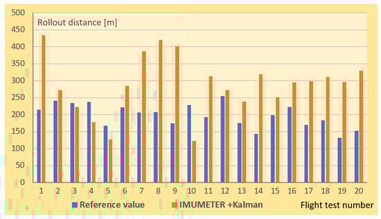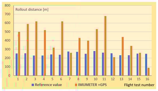 Especially when determining the ground performance of light airplanes operating on unsurfaced airfields and opportune grass landing sites, measuring the actual take-off or rollout distance is of great importance. Often, when a pilot arrives at a given landing site, it is unable to determine with sufficient certainty whether the take-off on the way back will be safe, especially if the length of the available runway is small, and the condition of the turf raises additional doubts (long, tall grass, moist, soft soil) [,]. The methods of measuring ground performance used in industrial practice are inadequate to the above conditions, mainly due to the difficulties in implementation, the need to use specialized equipment and dependence on technicians making measurements on the ground [,].