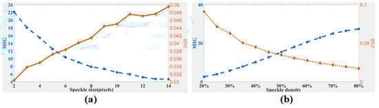 Assessment results of speckle patterns with (a) different speckle sizes and (b) different speckle densities.