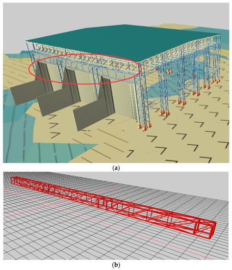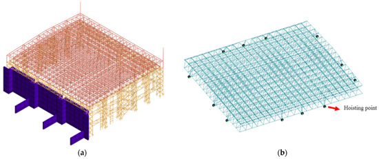 Numerical model: (a) converter station steel structure and (b) hoisting point.